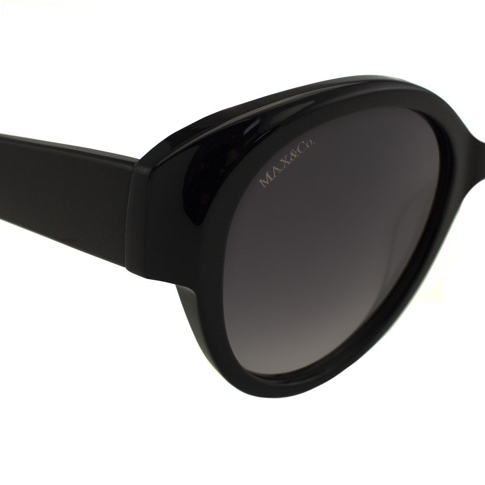 Женские очки MAX&CО. | Оригинальные модные женские солнцезащитные очки MAX&CО. 0076 01B. Материал оправы - пластик, очки прочные и легкие, обеспечивают комфорт и удобство в течение длительного ношения. Тип оправы - ободковая, форма оправы - овальная, цвет оправы - чёрный. Линзы из современного высокотехнологичного материала эффективно защищают глаза даже при самом ярком солнце. Материал линз - полимер, цвет линз - серый градиент, линзы без поляризации. Женские солнцезащитные очки MAX&Co 0076 01B изящно создают и дополняют образ яркой и неподражаемой женщины, подчеркивают утонченность и стиль, дарят неповторимый женственный шарм. Очки оригинальные, страна производства - Италия. Выбрать и купить женские солнцезащитные очки MAX&CО. 0076 01B по низкой цене можно в нашем в онлайн-гипермаркете оптики OPTIKLASS.SHOP или заказать по телефону через оператора.