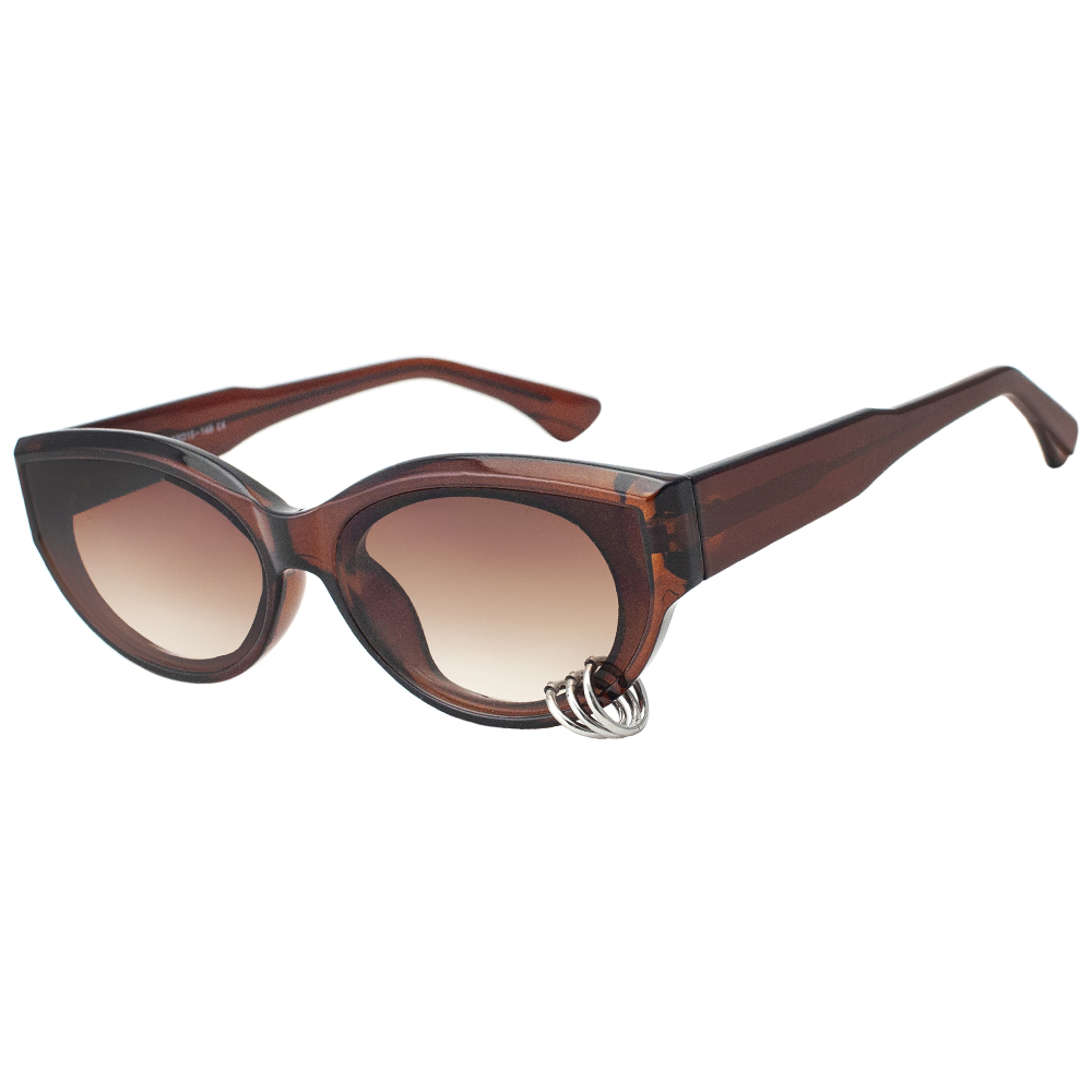 Женские очки EYENEYE | Оригинальные модные женские солнцезащитные очки EYENEYE 2009 2. Материал оправы - пластик, очки прочные и легкие, обеспечивают комфорт и удобство в течение длительного ношения. Тип оправы - ободковая, форма оправы - кошачий глаз, цвет оправы - полупрозрачный коричневый. Линзы из современного высокотехнологичного материала эффективно защищают глаза даже при самом ярком солнце. Материал линз - полимер, цвет линз - коричневый градиент, линзы без поляризации. Женские солнцезащитные очки Eyeneye 2009 2 изящно создают и дополняют образ яркой и неподражаемой женщины, подчеркивают утонченность и стиль, дарят неповторимый женственный шарм. Очки оригинальные, страна производства - Китай. Выбрать и купить женские солнцезащитные очки EYENEYE 2009 2 по низкой цене можно в нашем в онлайн-гипермаркете оптики OPTIKLASS.SHOP или заказать по телефону через оператора.